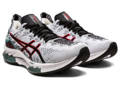 The ASICS White Gel-Kinsei Blast Trainers blend sleek style with high-performance tech, ideal for serious runners. Featuring GEL™ and FF BLAST™ cushioning, they offer superior shock absorption and a responsive ride. The breathable mesh upper ensures comfort and ventilation on long runs. With a futuristic silhouette and durable build, these trainers balance innovation with everyday wearability.